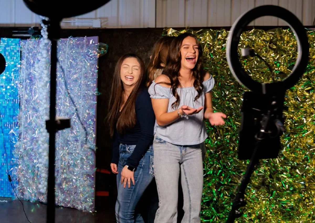 Flexible Backdrop Options: Use the gold wall, choose another studio set, or film in the open party room.