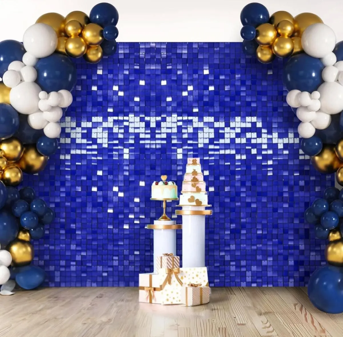 This royal blue shimmer wall delivers crisp color and structure, making it a strong choice for both formal and fun events.