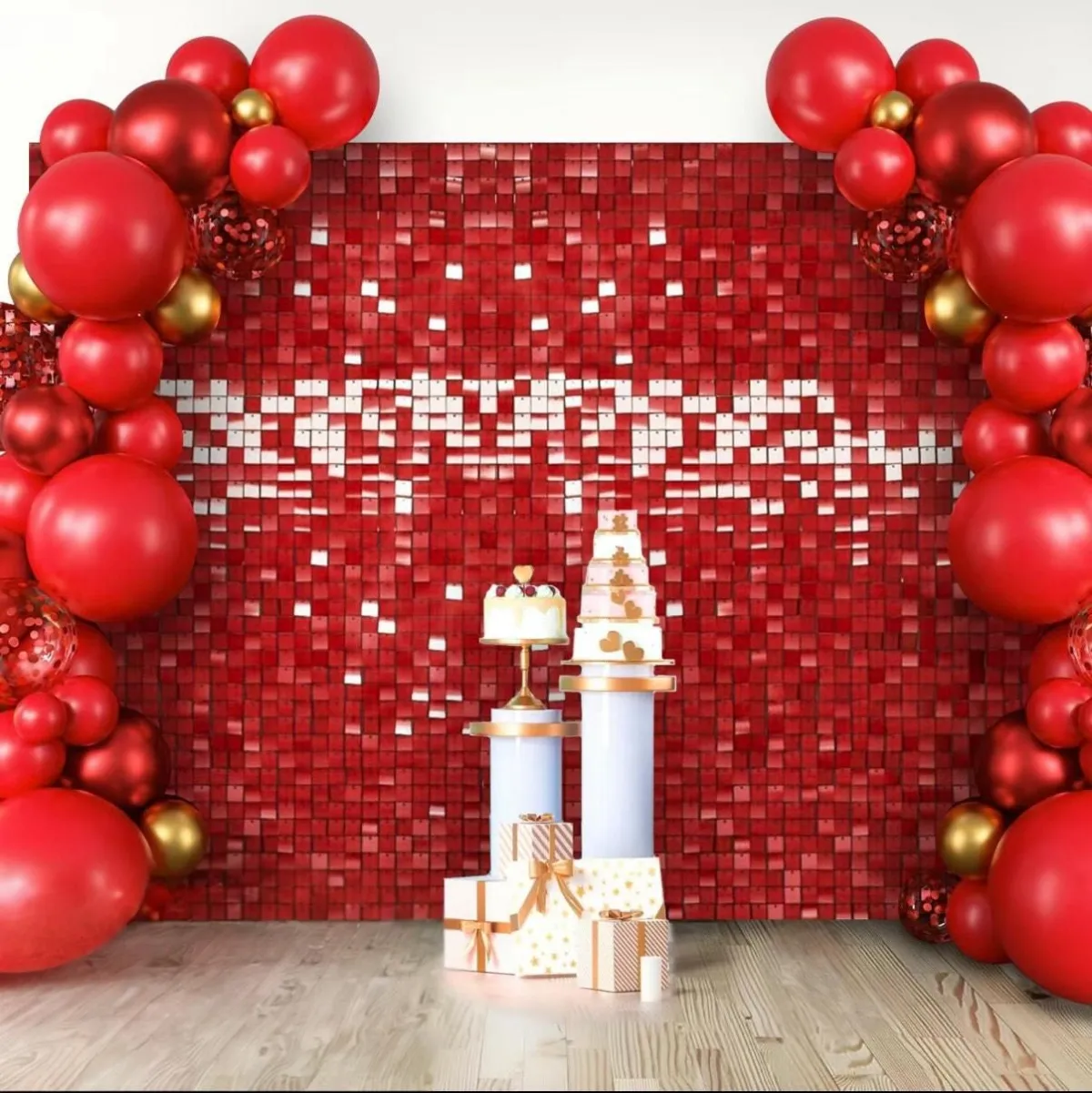 This deep red shimmer wall creates a dramatic and unforgettable backdrop. Ideal when you want emotion, intensity, and strong visual presence.